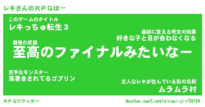 | ファンタジー風あだ名 | 『レキフェル』『エターナルレキー』 |