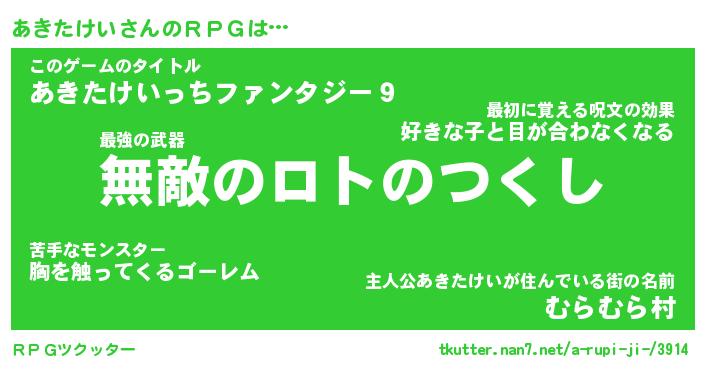 | ファンタジー風あだ名 | 『アキフェル』『エターナルアキタケイー』 |