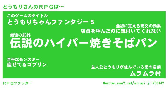 | 男性向けラノベタイトル風あだ名 | 『とうもりの憂鬱』 |