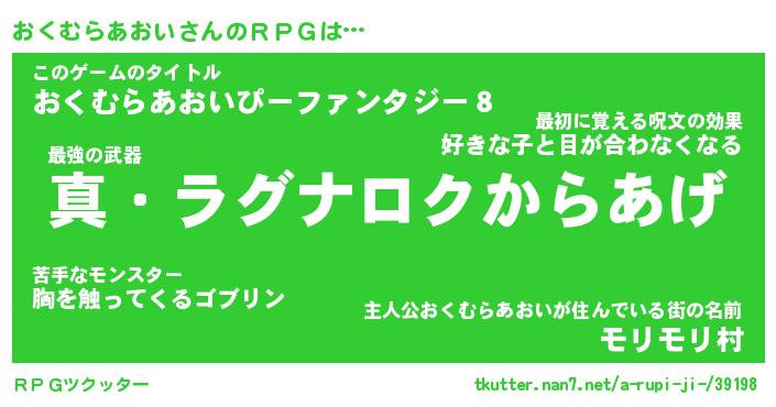 | 伝説のあだ名 | 『封印されし竜騎士おくむらあおい』 |