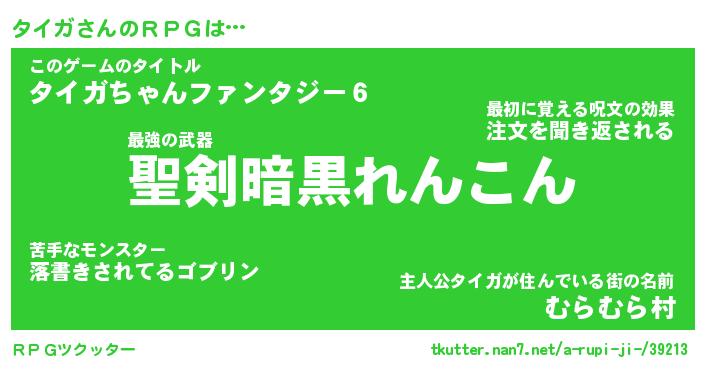 | 男性向けラノベタイトル風あだ名 | 『タイガの憂鬱』 |