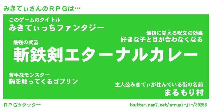 | 伝説のあだ名 | 『伝説の傭兵みきてぃ』 |