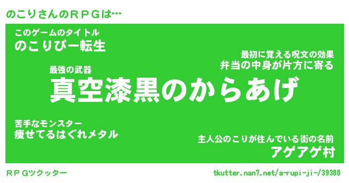 | 男性向けラノベタイトル風あだ名 | 『ノコリアートオンライン』 |