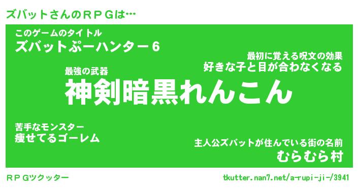 | 男性向けラノベタイトル風あだ名 | 『ズバットの憂鬱』 |