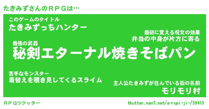 | ファンタジー風あだ名 | 『タキフェル』『エターナルタキミズー』 |