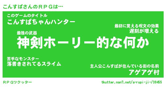 | 男性向けラノベタイトル風あだ名 | 『こんすぱの憂鬱』 |