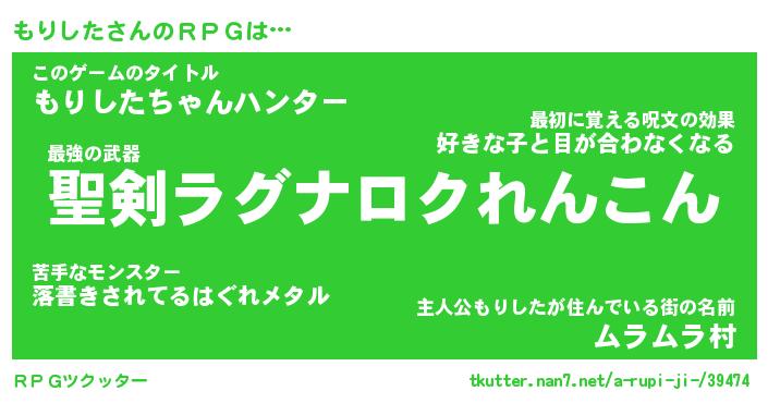 | 伝説のあだ名 | 『伝説の竜騎士もりした』 |