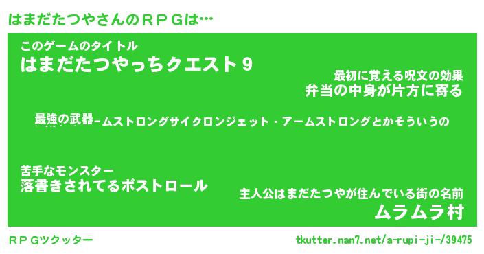 | 男性向けラノベタイトル風あだ名 | 『はまだたつやの憂鬱』 |