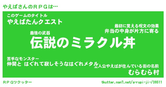| 料理風あだ名 | 『節約★やえばと油揚げの玉子丼』 |