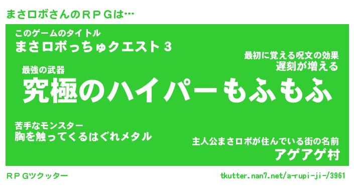 | ファンタジー風あだ名 | 『マサフェル』『エターナルマサロボー』 |