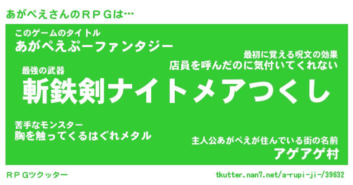 | ファンタジー風あだ名 | 『アガフェル』『エターナルアガペエー』 |