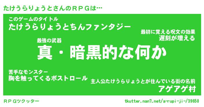 | 男性向けラノベタイトル風あだ名 | 『タケウラリョウトアートオンライン』 |