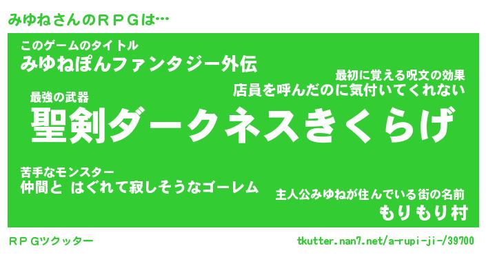 | ファンタジー風あだ名 | 『ミユフェル』『エターナルミユネー』 |