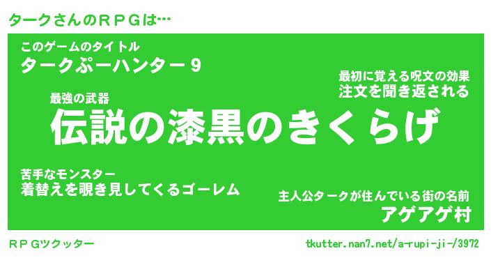 | 女子向けラノベタイトル風あだ名 | 『ターク姫と円卓の騎士』『ターク恋絵巻』 |