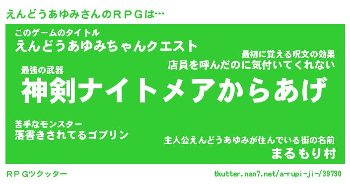 | 胡散臭い通販商品みたいなあだ名 | 『モテモテ間違いなし霊験あらたかなお札…その名も「えんどうあゆみ」』 |