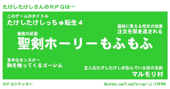 | 男性向けラノベタイトル風あだ名 | 『たけしたけしの憂鬱』 |