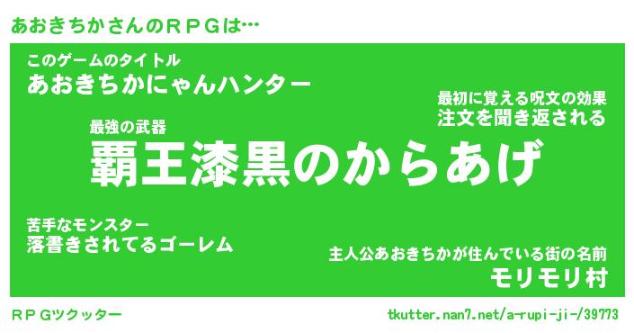 | 男性向けラノベタイトル風あだ名 | 『アオキチカアートオンライン』 |