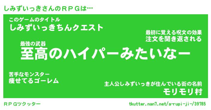 | 男性向けラノベタイトル風あだ名 | 『シミズイッキアートオンライン』 |
