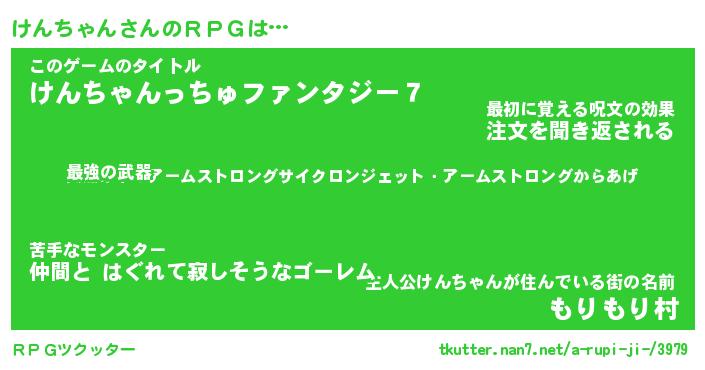 | ヒーロー風カッコイイあだ名 | 『スーパーケンチャン』『幻影騎士ケン』 |