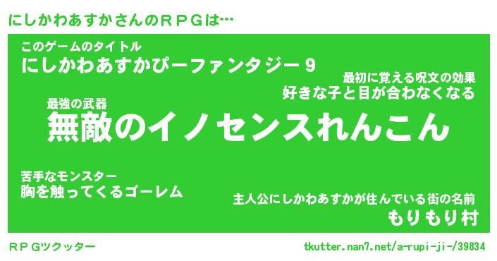 | ファンタジー風あだ名 | 『ニシフェル』『ファントムニシス』 |