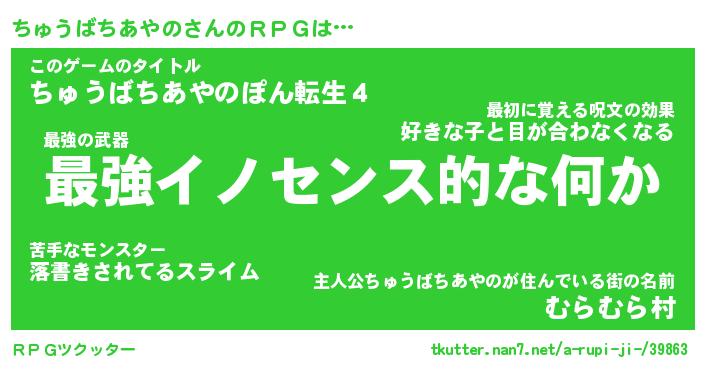 | 胡散臭い通販商品みたいなあだ名 | 『モテモテ間違いなし霊験あらたかなお札…その名も「ちゅうばちあやの」』 |