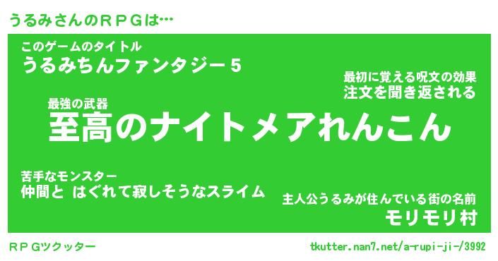 | ピコ太郎風あだ名 | 『ウコ十郎』『ピウ五郎』『ウル六郎』 |