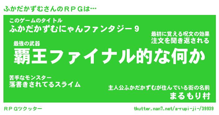 | 男性向けラノベタイトル風あだ名 | 『フカダカズムアートオンライン』 |