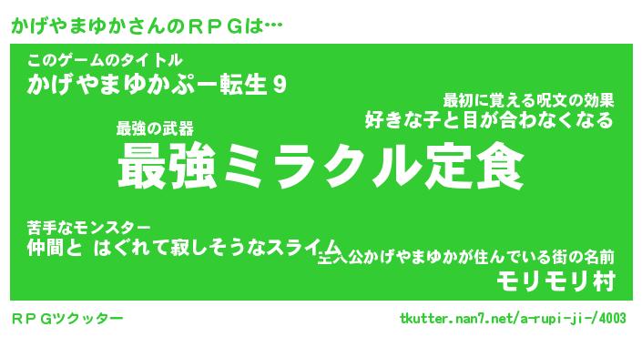 | 伝説のあだ名 | 『不死鳥の竜騎士かげやまゆか』 |