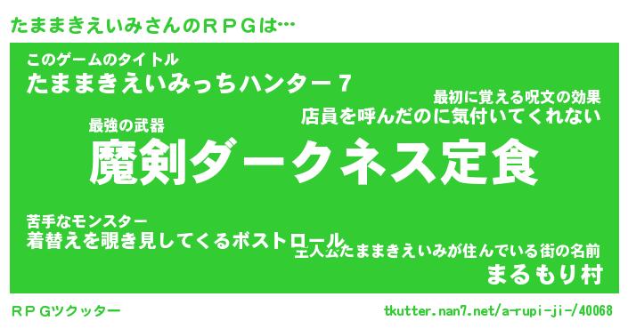 | 男性向けラノベタイトル風あだ名 | 『たままきえいみの憂鬱』 |