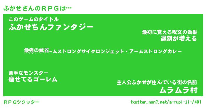 | 胡散臭い通販商品みたいなあだ名 | 『必ず成功するブレスレット…その名も「ふかせ」』 |