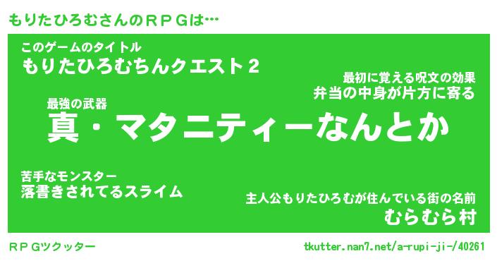 | 男性向けラノベタイトル風あだ名 | 『モリタヒロムアートオンライン』 |
