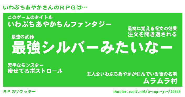 | 男性向けラノベタイトル風あだ名 | 『イワブチアヤカアートオンライン』 |