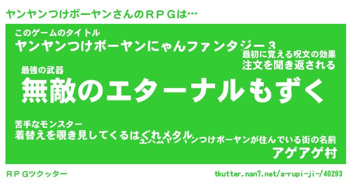 | ヒーロー風カッコイイあだ名 | 『スーパーヤンヤンツケボーヤン』 |