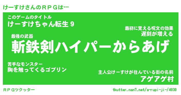 | 男性向けラノベタイトル風あだ名 | 『けーすけの憂鬱』 |