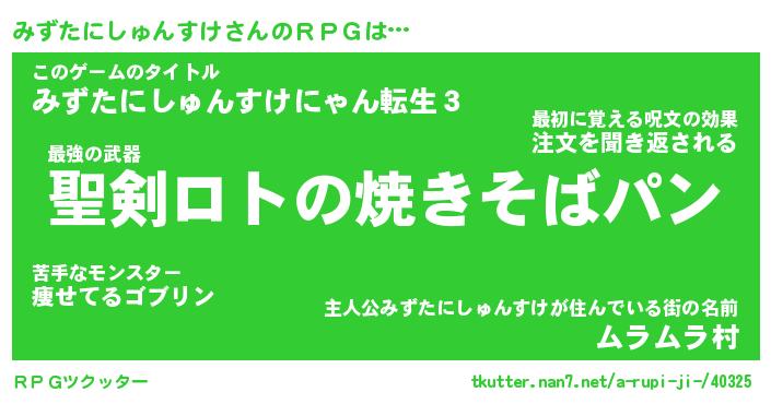 | 男性向けラノベタイトル風あだ名 | 『みずたにしゅんすけの憂鬱』 |