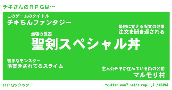 | 男性向けラノベタイトル風あだ名 | 『チキの憂鬱』『ノーゲーム・ノーチキ』 |