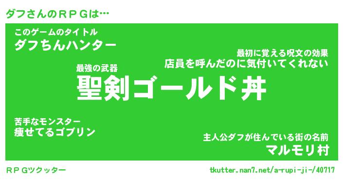 | ファンタジー風あだ名 | 『ダフフェル』『エターナルダフー』 |