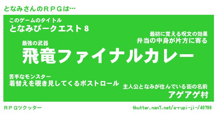 | 男性向けラノベタイトル風あだ名 | 『トナミアートオンライン』 |