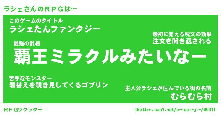| 男性向けラノベタイトル風あだ名 | 『ラシェアートオンライン』 |