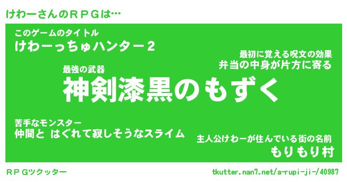 | ヒーロー風カッコイイあだ名 | 『スーパーケワー』『ウルトラけわーマン』 |