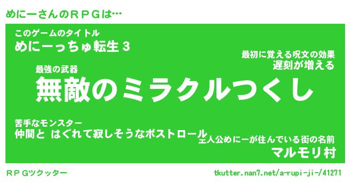 | ポケモン風あだ名 | 『メニチュウ』『メニーダネ』 |