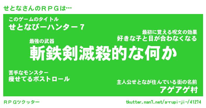 | ファンタジー風あだ名 | 『セトフェル』『エターナルセトナー』 |