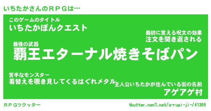 | 男性向けラノベタイトル風あだ名 | 『イチタカアートオンライン』 |