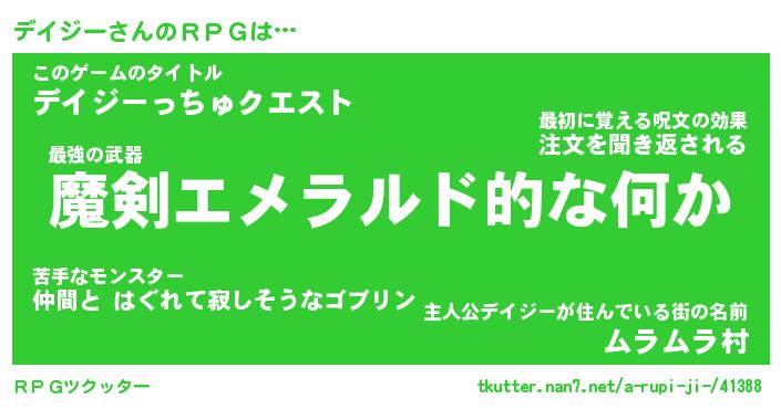| 胡散臭い通販商品みたいなあだ名 | 『必ず成功する霊験あらたかなお札…その名も「デイジー」』 |