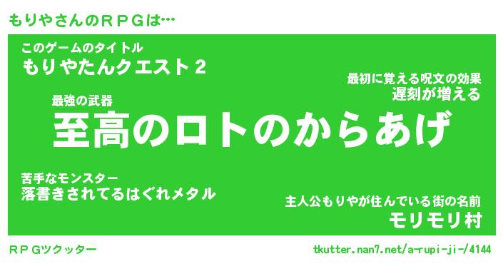 | 男性向けラノベタイトル風あだ名 | 『モリヤアートオンライン』 |