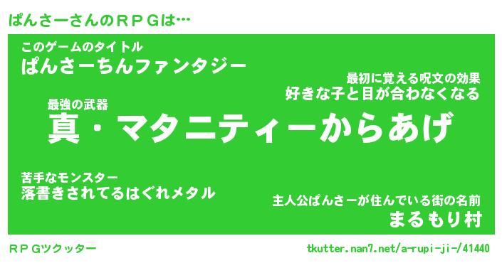 | 伝説のあだ名 | 『封印されしスナイパーぱんさー』 |