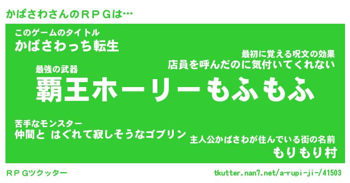 | 男性向けラノベタイトル風あだ名 | 『カバサワアートオンライン』 |