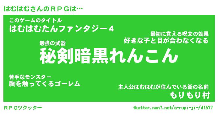 | ファンタジー風あだ名 | 『ハムフェル』『エターナルハムハムー』 |