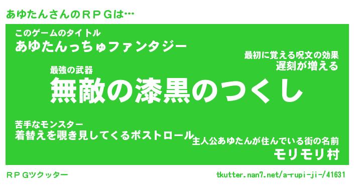 | 男性向けラノベタイトル風あだ名 | 『アユタンアートオンライン』 |