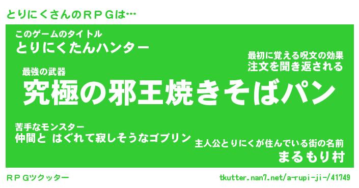 | 男性向けラノベタイトル風あだ名 | 『とりにくの憂鬱』 |